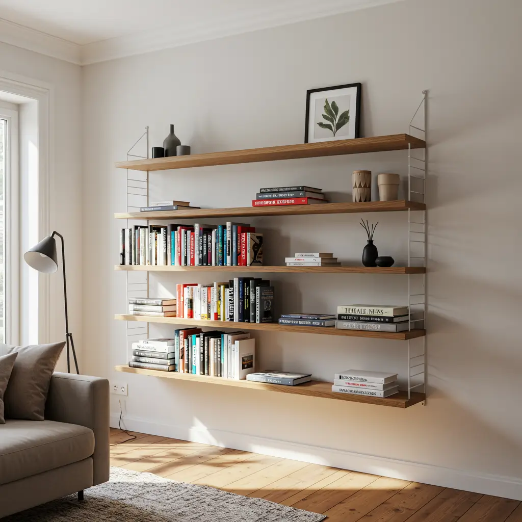 A floating shelf mounts directly to your wall studs. I installed three reclaimed wood shelves in my living room last summer. This single move freed up about 40% of my floor space. Now, my book collection looks like it’s magically suspended in mid-air. It feels much lighter and more modern than a heavy oak bookcase.