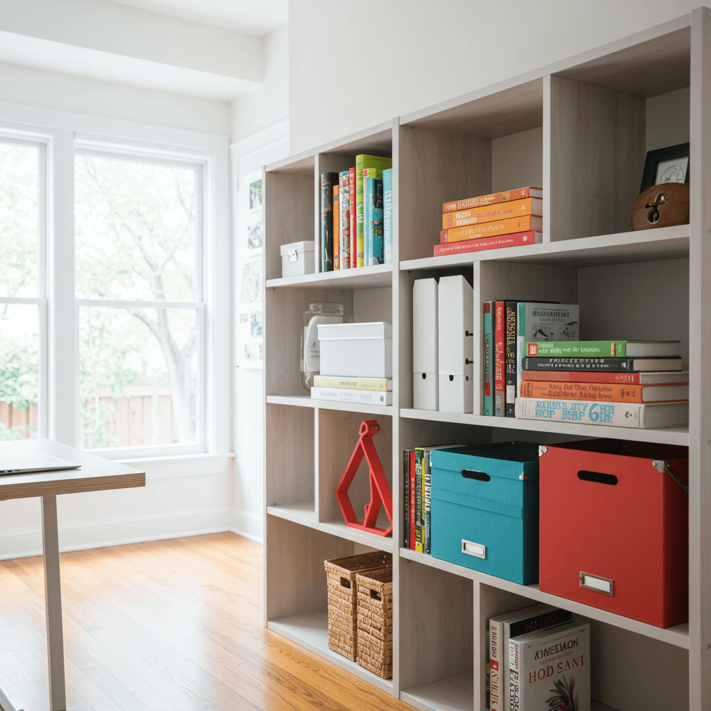 I recommend building your cubes in a standard size, like 12×12 or 15×15 inches. This allows them to fit standard fabric bins and ensures they stack neatly. You can leave some cubes open for books and add doors or backing to others for hidden storage.