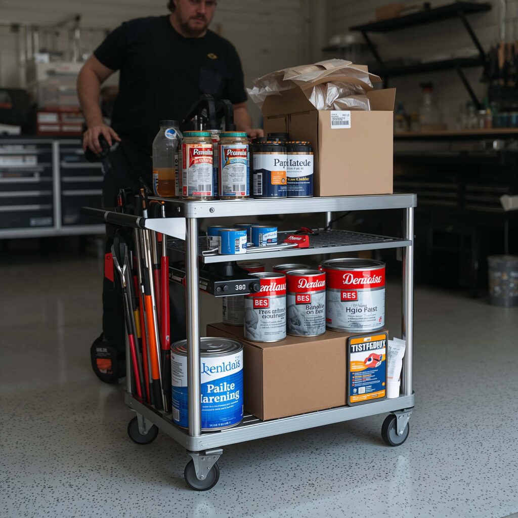 You can build a sturdy rolling cart from plywood, 2x4s, and a set of heavy-duty casters. The beauty of the DIY approach is sizing the cart to fit your specific needs and your garage’s layout.