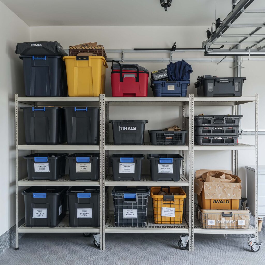 10. Garage Storage Bins with Labels