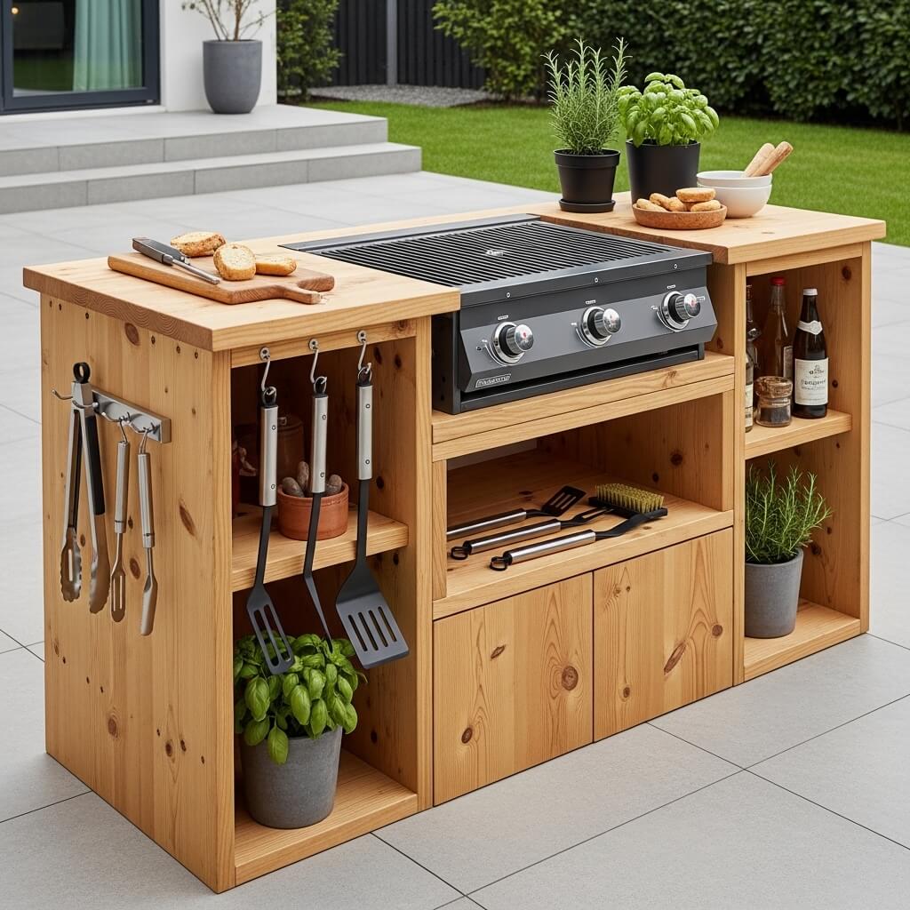 The key difference between this and other designs is the emphasis on organization. You’re not just building a table—you’re creating a complete grilling workstation where everything has its place. It’s the Marie Kondo approach to outdoor cooking, and yes, it actually does spark joy 🙂