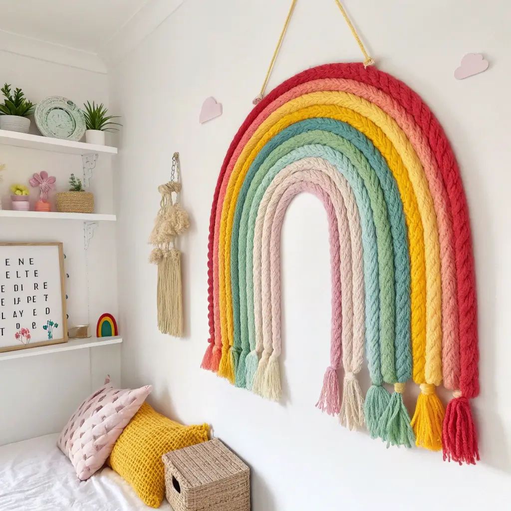Kids are naturally drawn to bright colors—it’s like moths to a flame but less dangerous and more adorable. A rainbow yarn wall hanging brings that burst of color in a soft, textured way that doesn’t feel overwhelming or chaotic. Plus, it’s ridiculously simple to make, even if you’ve never crafted anything in your life.