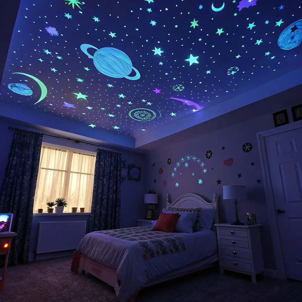 Get a variety of sizes—mixing large stars with smaller ones creates depth and looks more like an actual night sky. Some sets even include planets and moons, which adds extra coolness points. I grabbed a pack with about 300 pieces for around twelve dollars, and that was enough to cover my son’s entire ceiling.