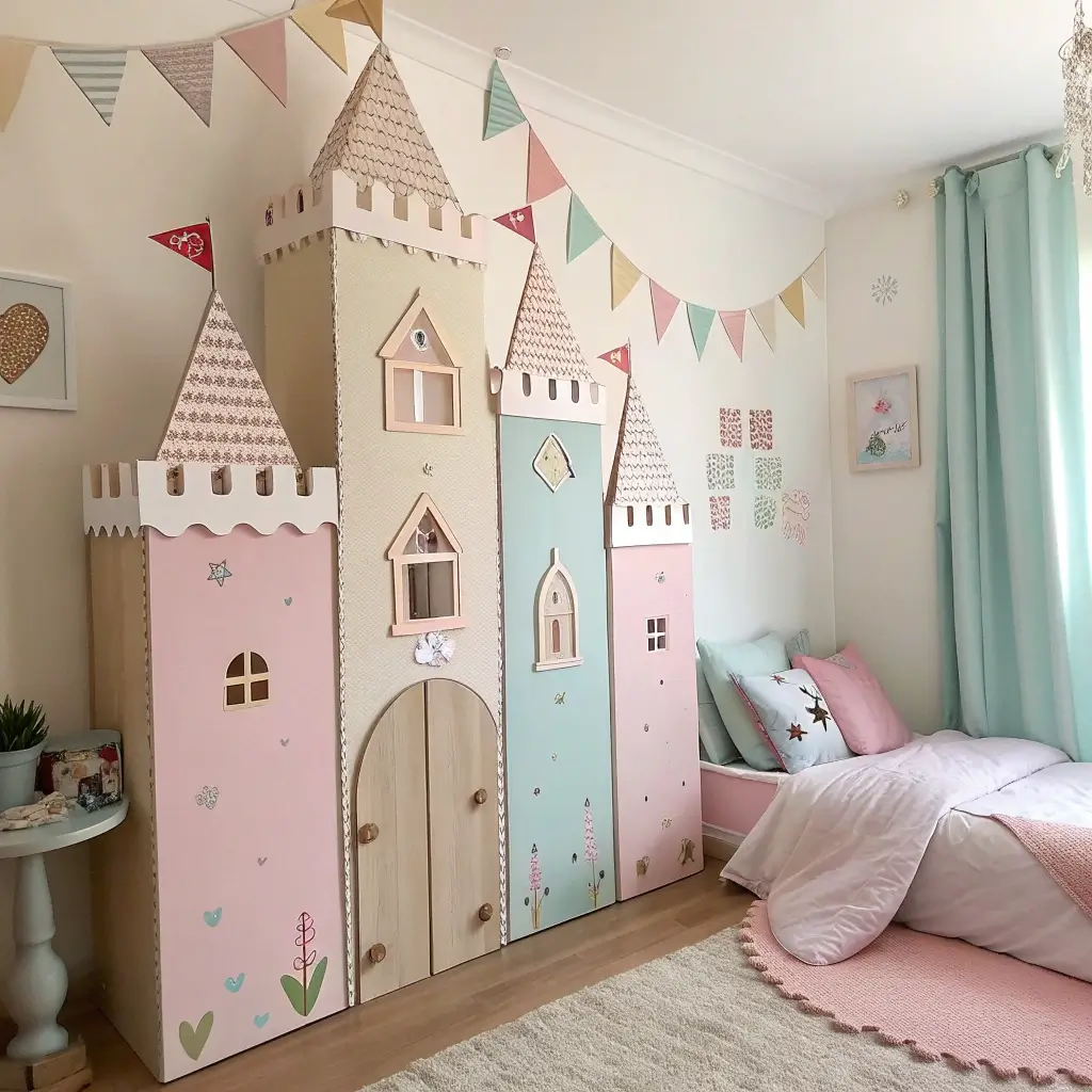Mount these panels to the wall using command strips or poster putty—both are renter-friendly and won’t damage walls. I usually put them behind the bed or along one accent wall to create a focal point. You can even make them removable so your kid can rearrange their castle however they want. Talk about interactive decor!