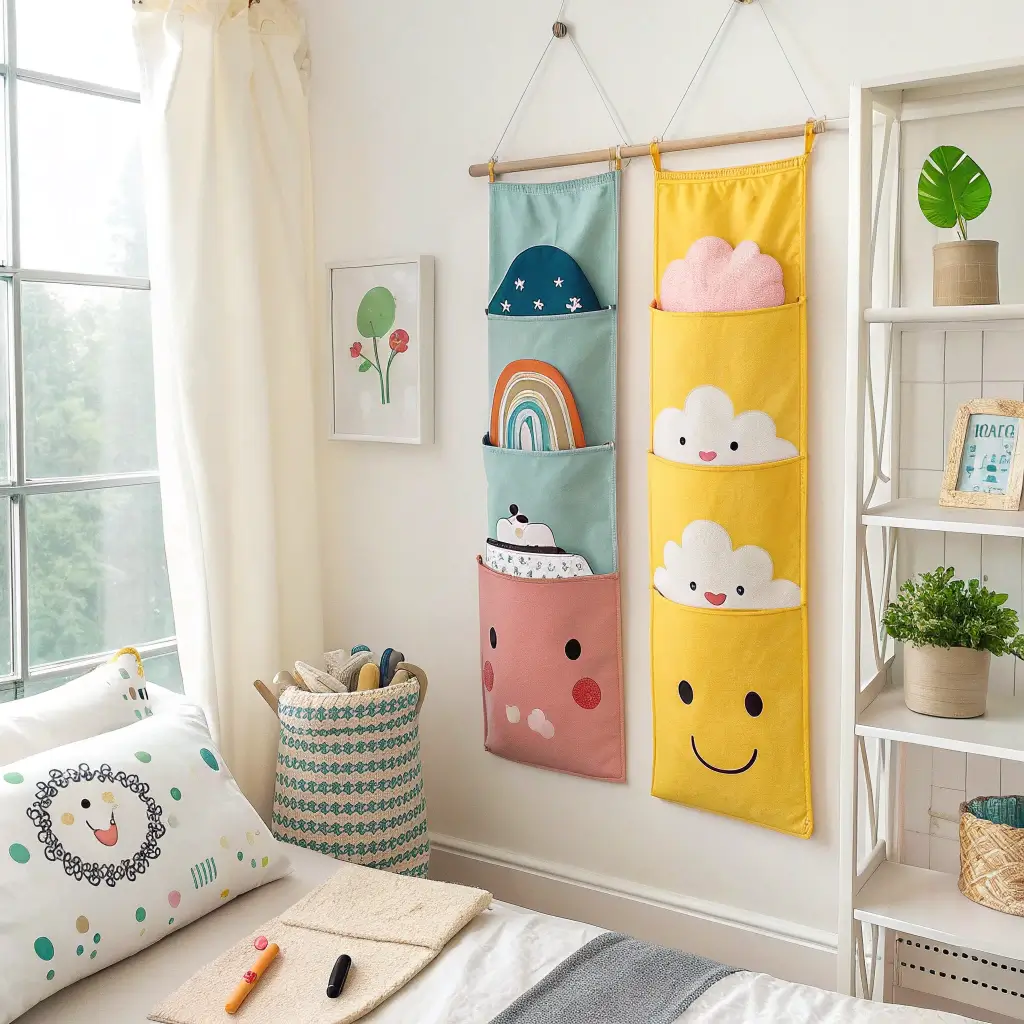 Let’s address the elephant in the room—kids have SO MUCH STUFF. Toys, books, crayons, random collections of rocks or stickers or whatever they’re currently hoarding. Storage is essential, but it doesn’t have to be boring plastic bins. Wall pockets combine storage with decor and keep clutter off the floor.