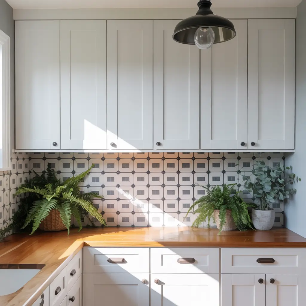 Choose a pattern that energizes you. Laundry is boring enough without staring at beige walls. My black and white pattern adds drama without overwhelming the small space. Visitors always comment on it, which makes me weirdly proud of my laundry room.