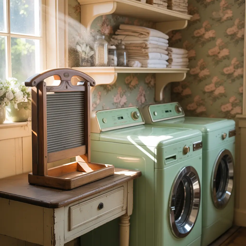Channel your inner antique collector without spending antique prices. I haunted thrift stores and garage sales for vintage washboards, old detergent tins, and retro laundry signs. Total investment? Under $40 for a completely transformed space.
