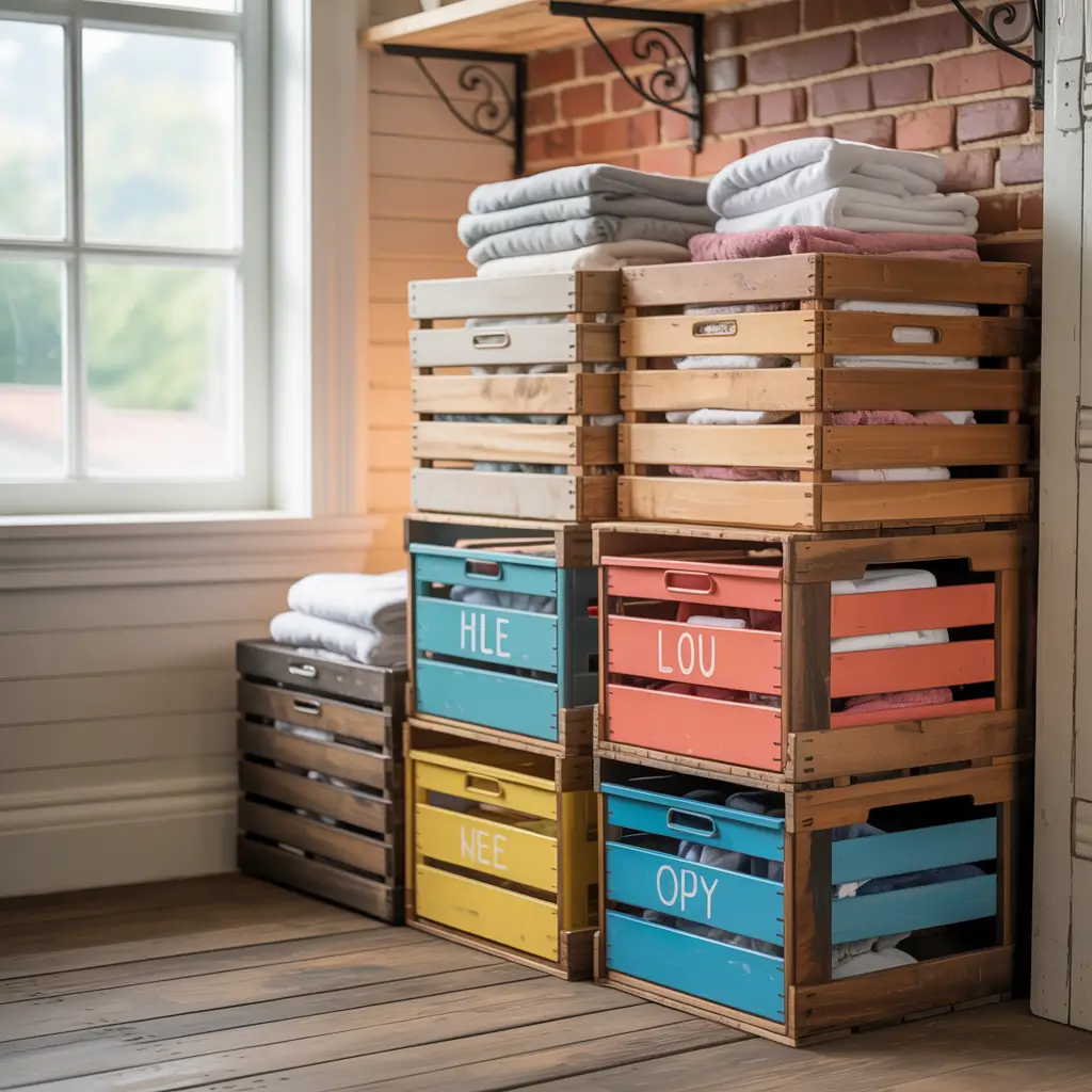 Old wooden crates make perfect laundry sorters, and you can usually snag them free from grocery stores or farmers markets. I collected six crates over a few weeks and created a custom sorting system that actually looks good.