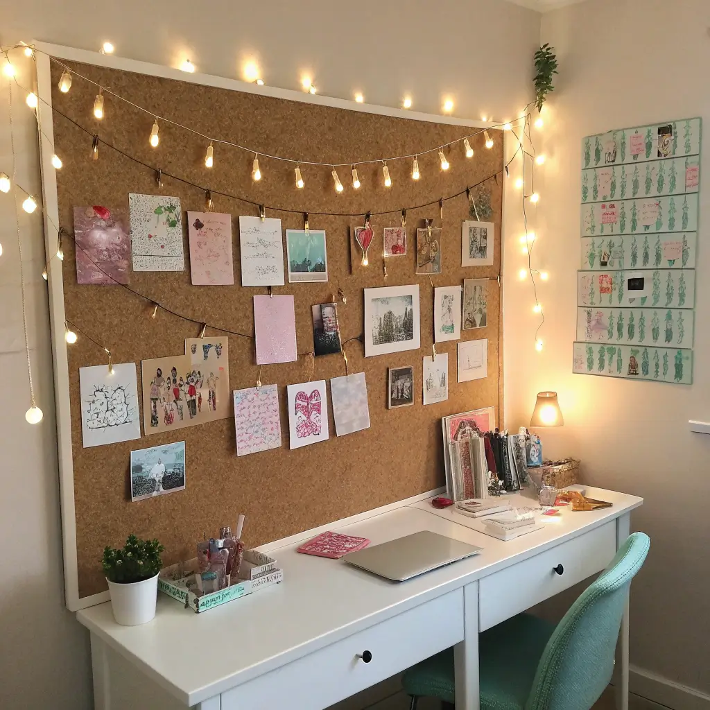 My cork board transformation involved fabric, decorative pins, and actual organization. Now it displays concert tickets, polaroids, motivational quotes, and my schedule without looking cluttered. It’s functional art that actually helps me keep my life together.