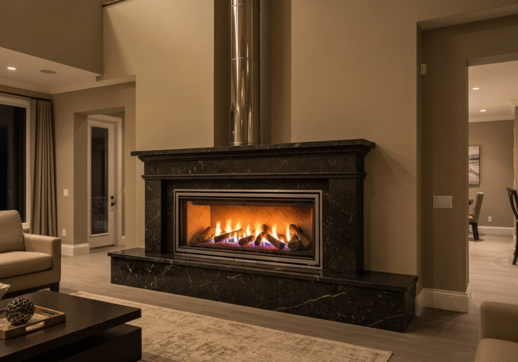 - Installation Flexibility: This system can be vented horizontally directly through an exterior wall, which is often easier and less expensive, or vertically through the roof . This flexibility allows a direct vent fireplace to be installed in almost any room with an outside wall, making it ideal for new construction and remodels where a traditional chimney does not exist.