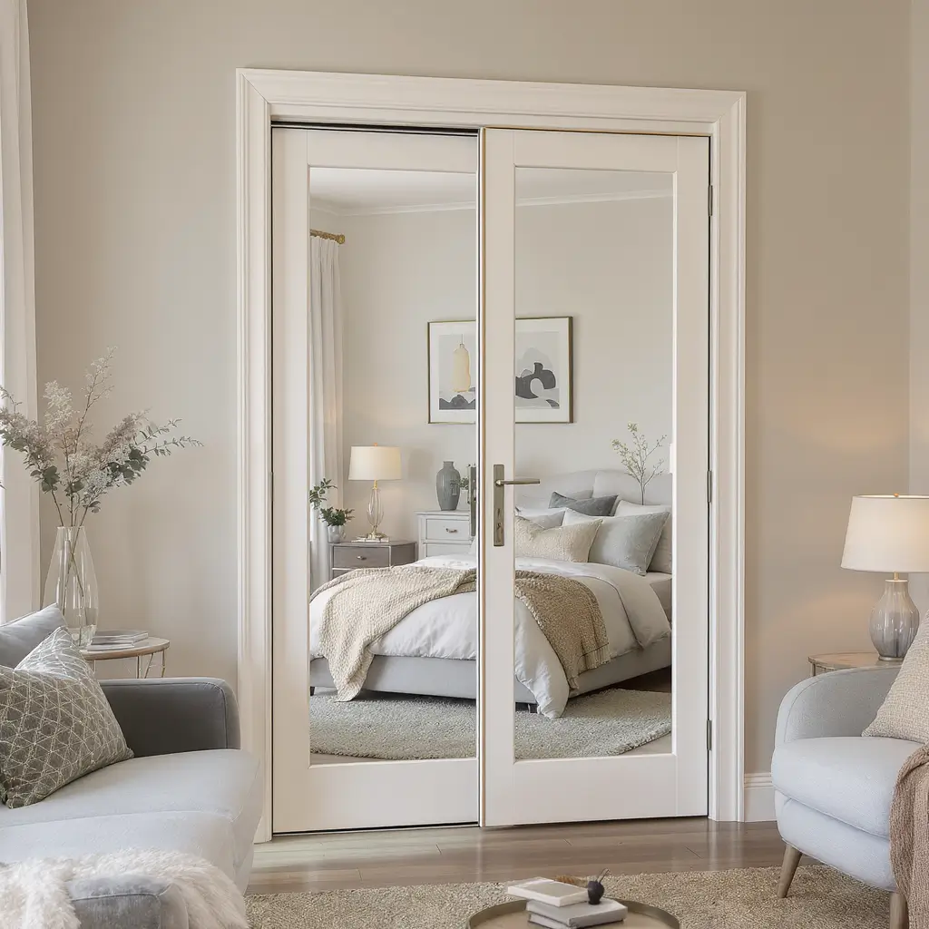 Mirror-accented bedroom doors are multitasking champions—they provide privacy, reflect light, make spaces feel larger, AND eliminate the need for a separate full-length mirror. That’s serious efficiency.