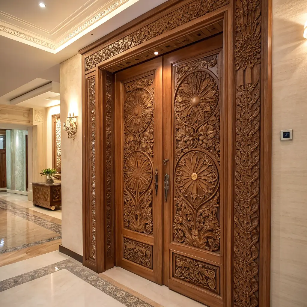 Teak wood carved doors bring artisan craftsmanship and exotic beauty to interior spaces. These detailed masterpieces turn functional necessities into conversation-starting focal points.
