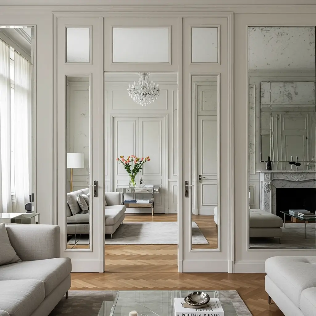 Mirror doors benefit bedrooms, closets, dressing rooms, and narrow hallways where visual expansion and reflection serve practical needs.