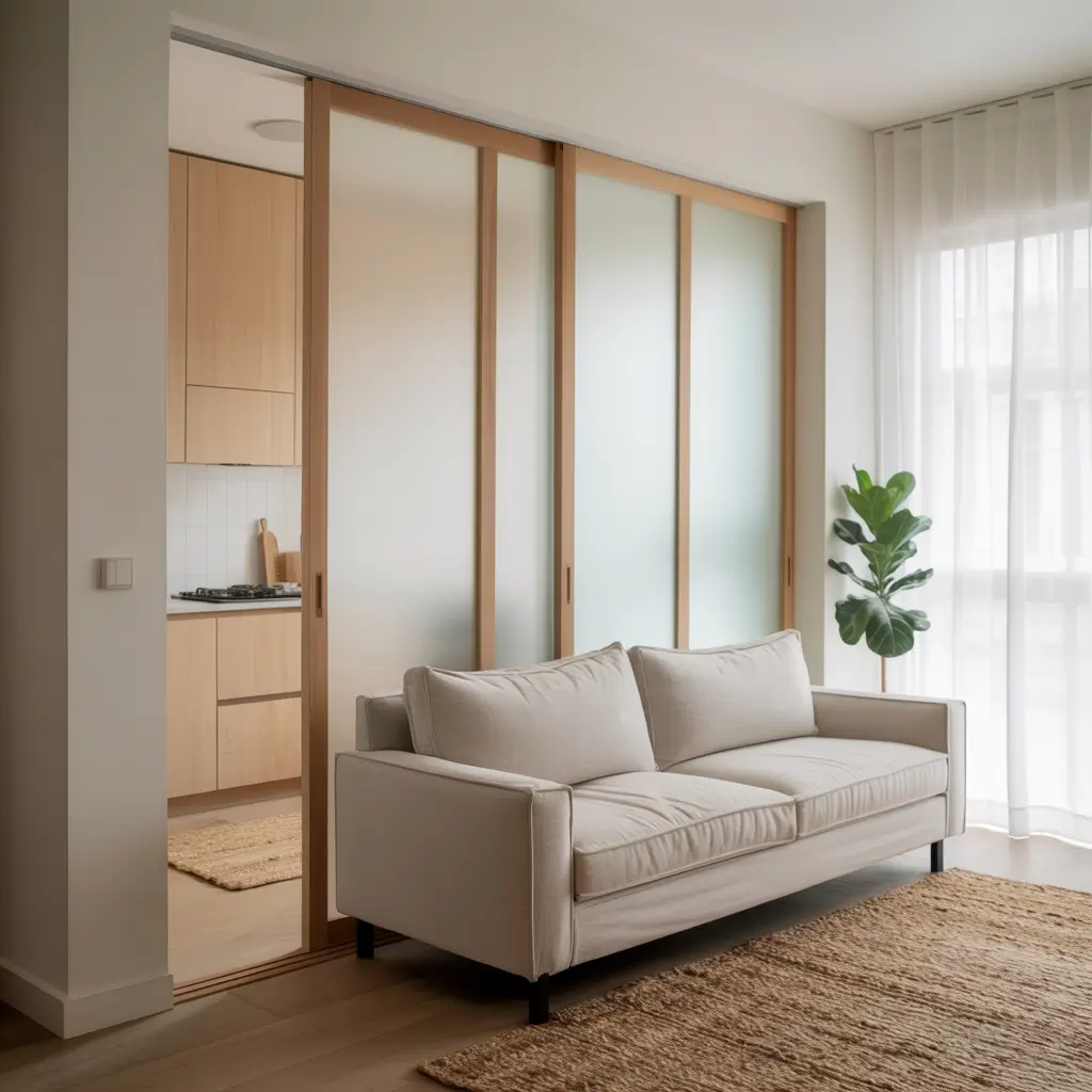 Pocket doors solve the fundamental problem of door swing consuming floor space. This design slides completely into the wall, reclaiming every inch that traditional doors would occupy.