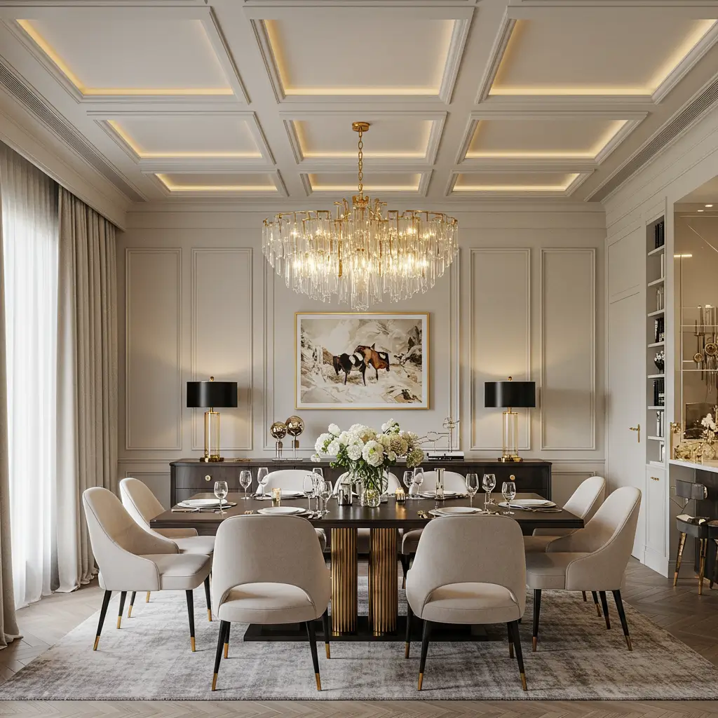 I used to think coffers were only for mansions and libraries in murder mystery movies. Then I saw a simplified version in a normal apartment, and my mind changed completely. Clean white coffers with LED strips in each recess created this incredible depth and rhythm that made a basic room feel like a million bucks.