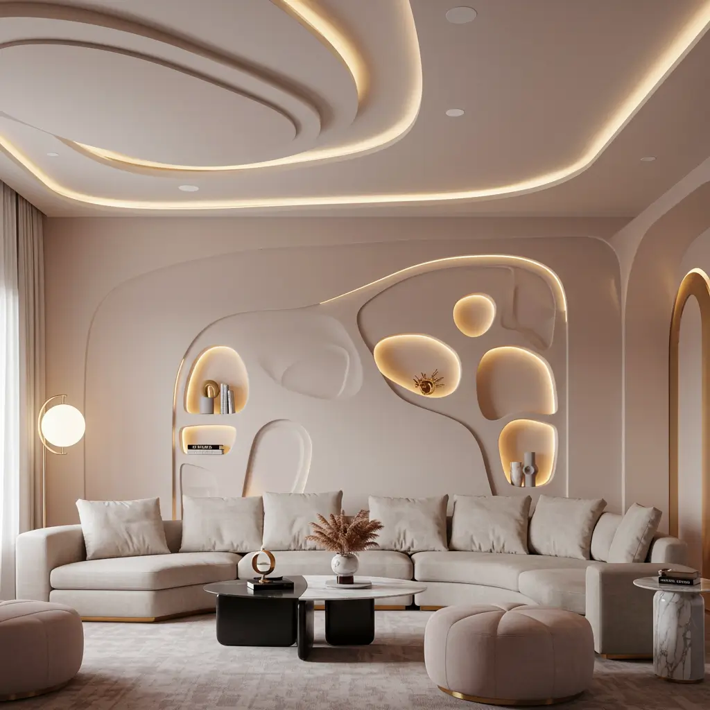 I’ve seen stunning examples where curves incorporate lighting that follows the flowing lines. Imagine a river of light flowing across your ceiling – it’s mesmerizing and creates this incredible sense of movement even in static space.