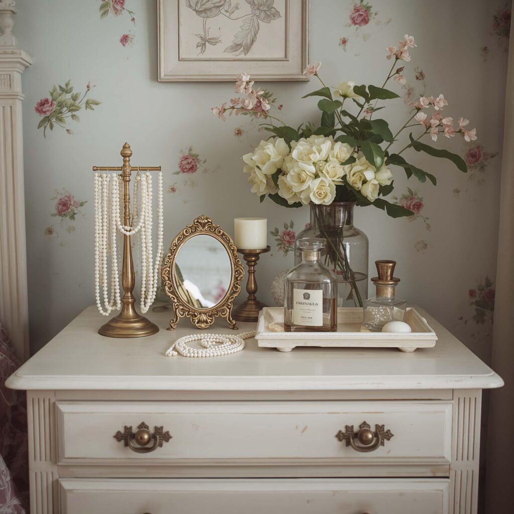 - Add a small vintage mirror behind for extra sparkle