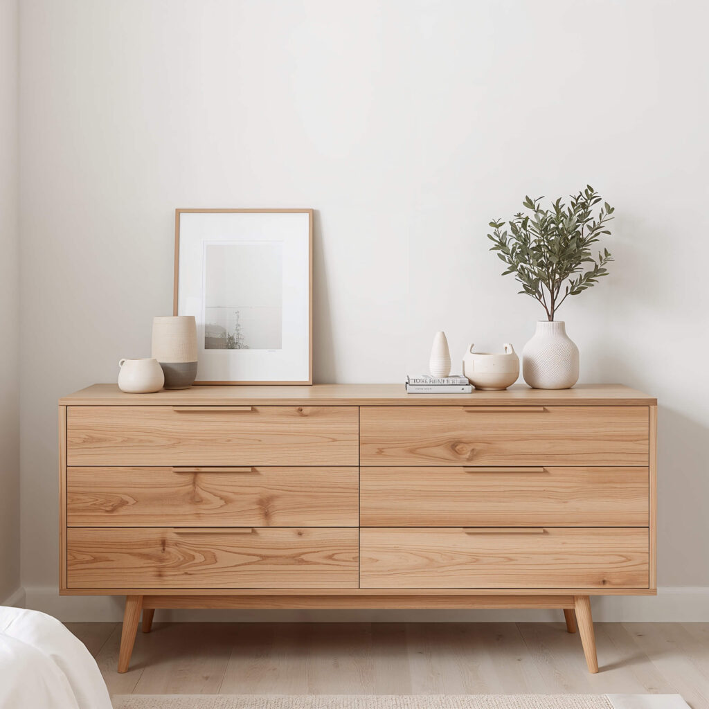 The beauty of wooden accents? They work with literally every design style. Scandinavian, boho, modern, traditional – wood plays well with everyone. It’s like the Switzerland of dresser decor. Neutral, but definitely making a statement.