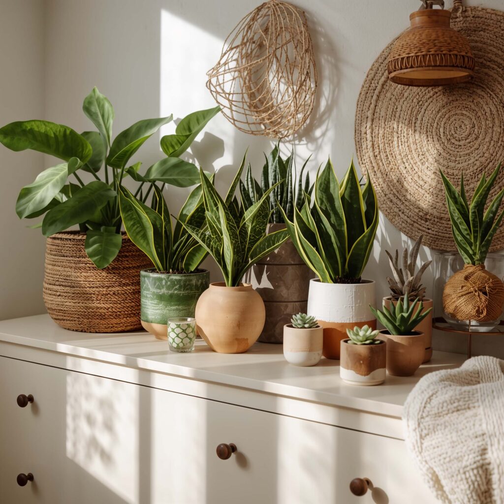 Low-light champions are your best friends here. Your dresser probably doesn’t get direct sunlight all day, so choose accordingly. Snake plants, ZZ plants, and pothos are basically indestructible. If you’re truly plant-challenged, start with one small plant and see how it goes. Success breeds confidence, trust me.