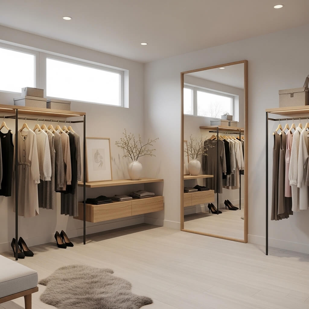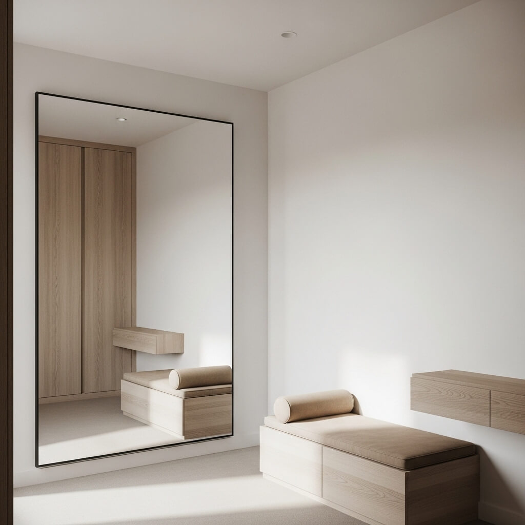 Vertical orientation is your best friend in small dressing rooms. A tall, narrow mirror draws the eye upward and makes your ceiling feel higher. I placed mine right next to my closet entrance, and suddenly my cramped space feels like a proper dressing area.