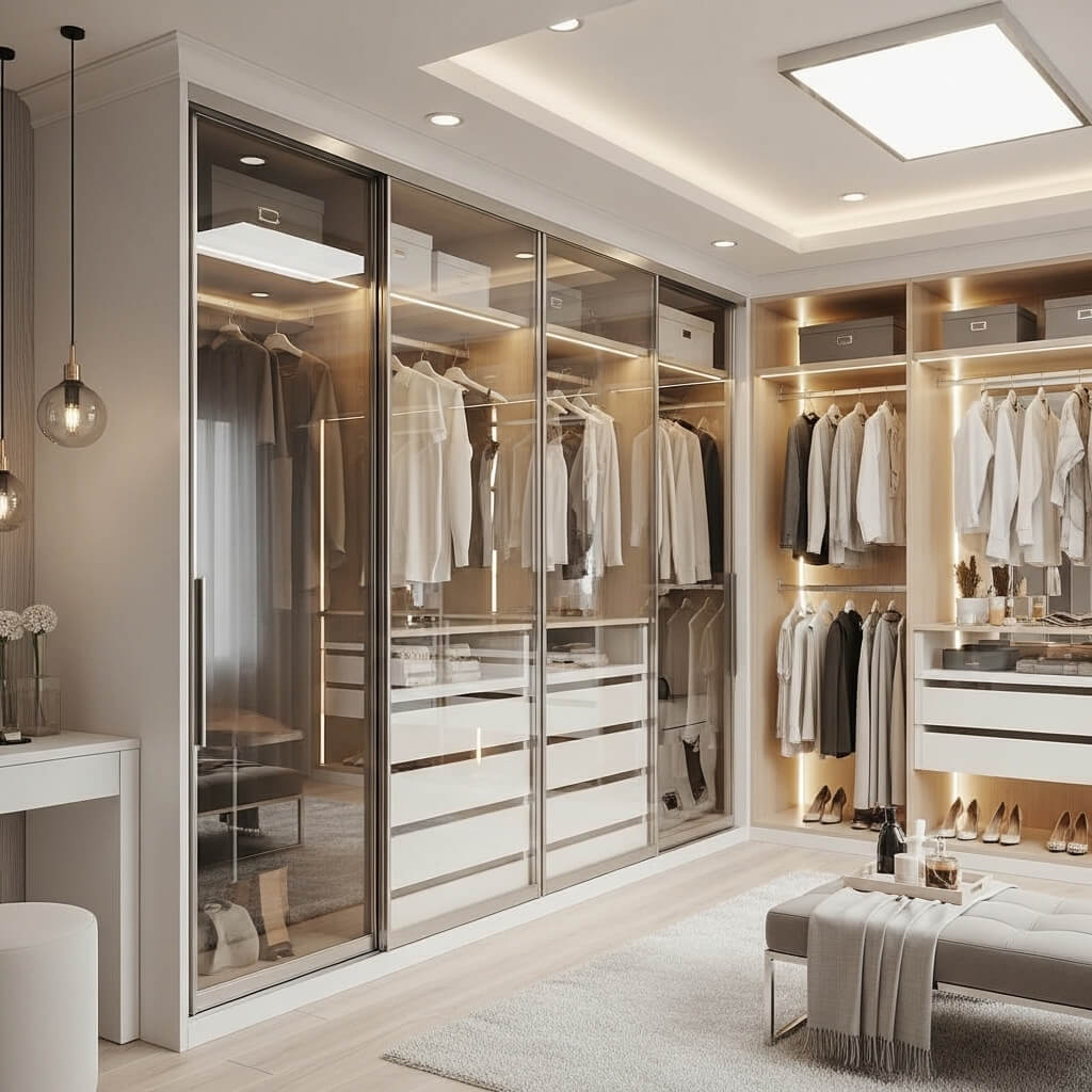 The beauty of sliding mirrors is the space efficiency. Traditional hinged doors need clearance to swing open; sliding doors need nothing. In a dressing room where every square foot matters, this is huge.