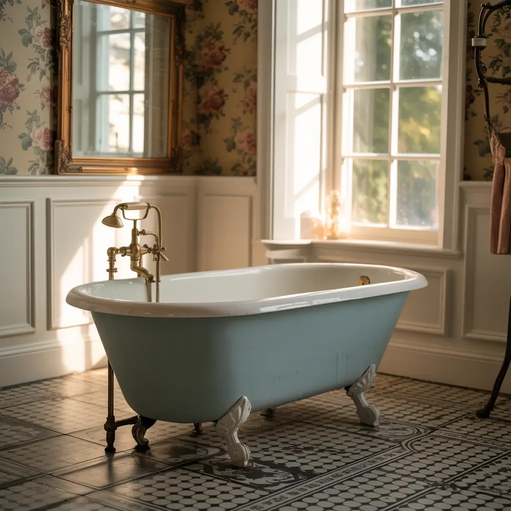 My grandmother’s house had a dusty blue bathroom that hadn’t been touched since 1938, complete with hexagon floor tiles and a pedestal sink. Instead of gutting it (like everyone suggested), we restored it. That dusty blue paired with vintage fixtures created this incredible time-capsule effect that modern bathrooms can’t replicate.