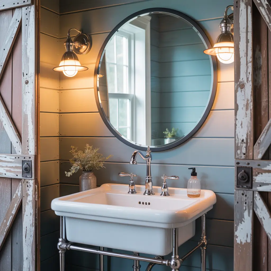 My own farmhouse bathroom features dusty blue shiplap walls, and let me tell you, it’s a game-changer. The color adds depth and interest while still feeling completely at home with barn doors, vessel sinks, and mason jar accessories. It’s farmhouse style for people who want something a little different.