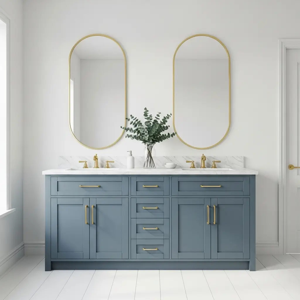 Want to feel like royalty every time you brush your teeth? Dusty blue and gold together create this understated luxury that makes everyday routines feel special. This combination brings warmth and sophistication without the gaudiness that can sometimes come with gold fixtures.