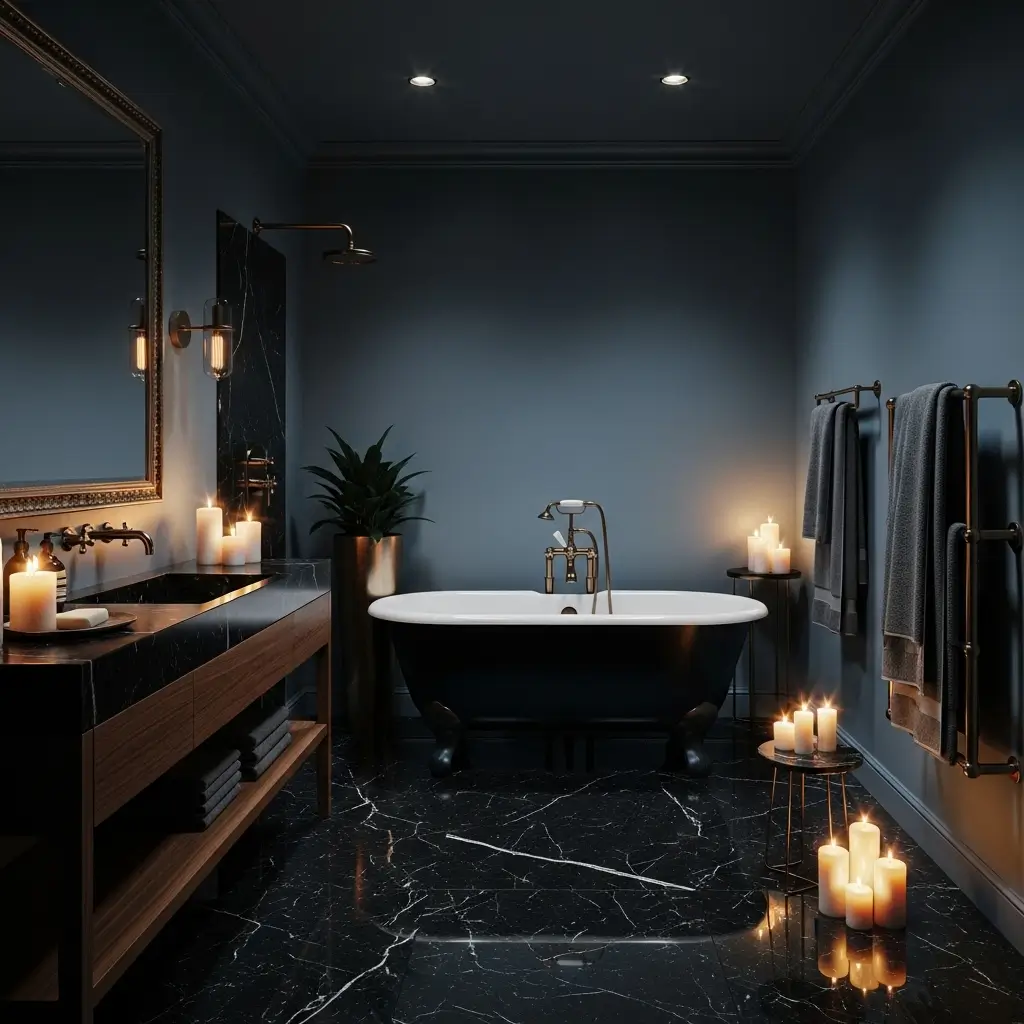 The key to moody contrast is lighting. You need plenty of it to prevent the space from feeling cave-like. Layer your lighting – overhead, vanity, and accent – to create depth and atmosphere that changes throughout the day.