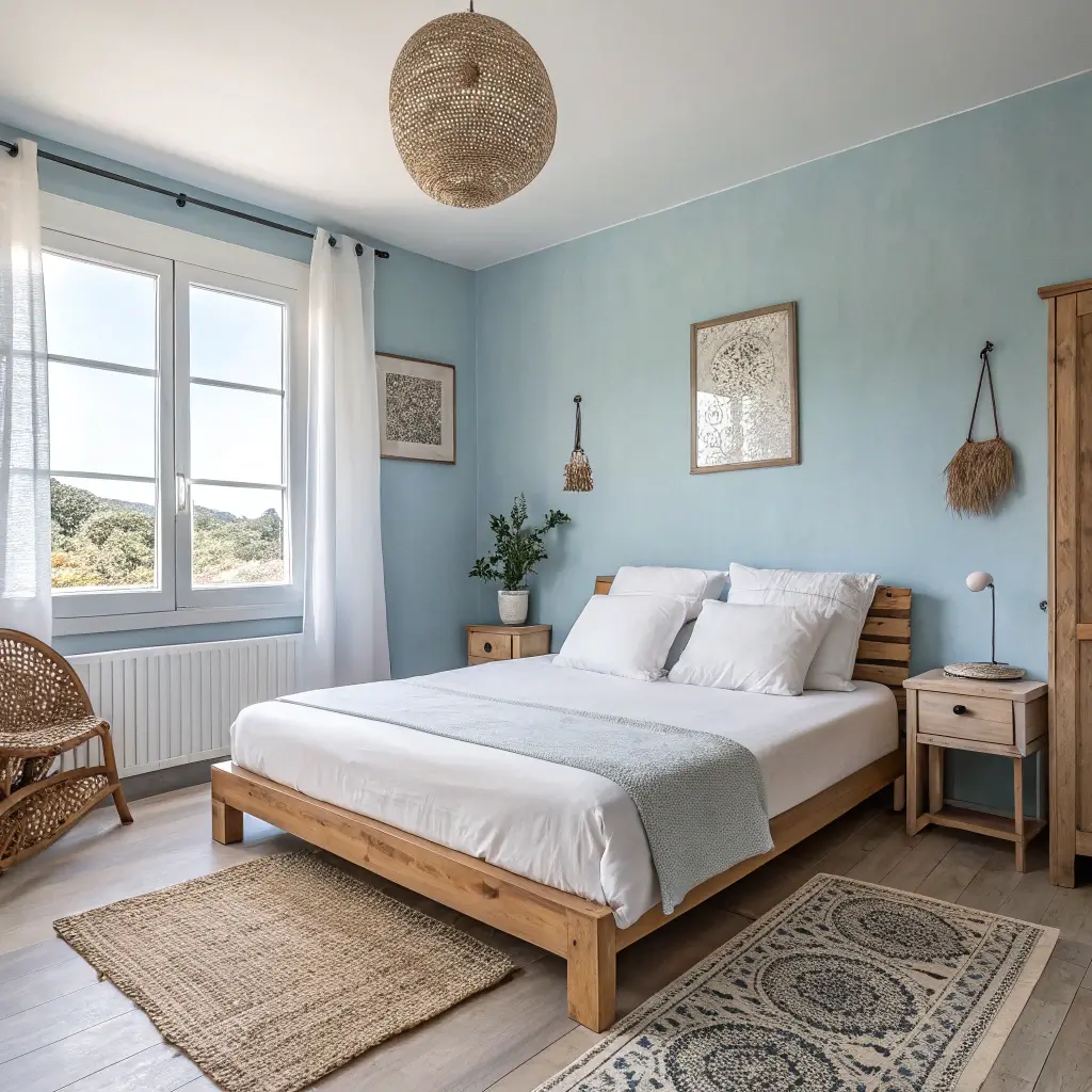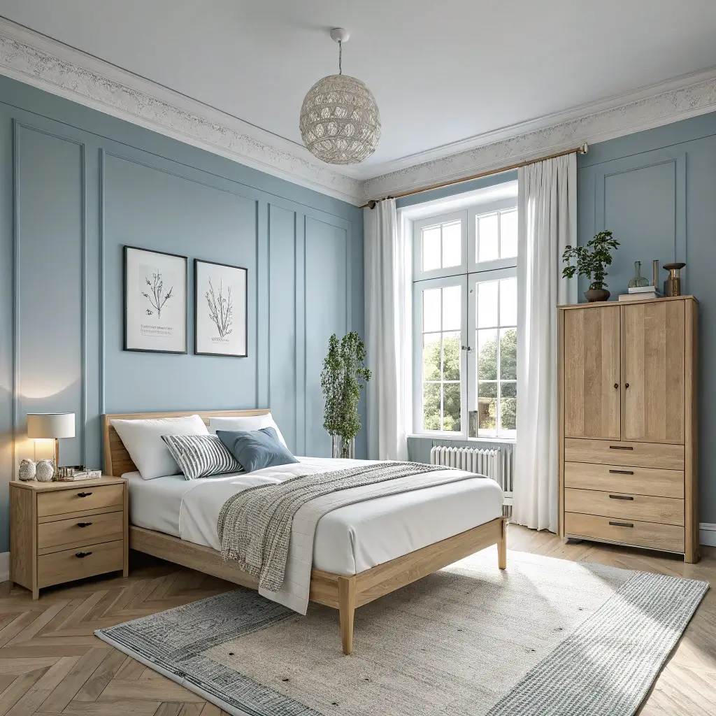 My Scandinavian-inspired bedroom uses dusty blue on just one wall, keeping the other three white. This ratio prevents the room from feeling too dark while still providing that signature Nordic sophistication.