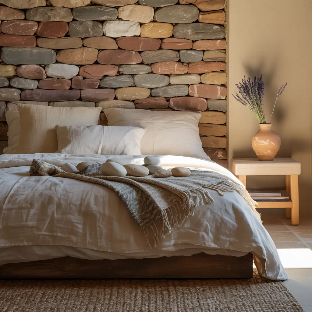 Want to feel grounded? Literally? Stone and clay elements bring raw, elemental beauty to your bedroom. We’re talking exposed brick walls, clay pottery, marble accents, and maybe even a slate floor if you’re feeling ambitious.
