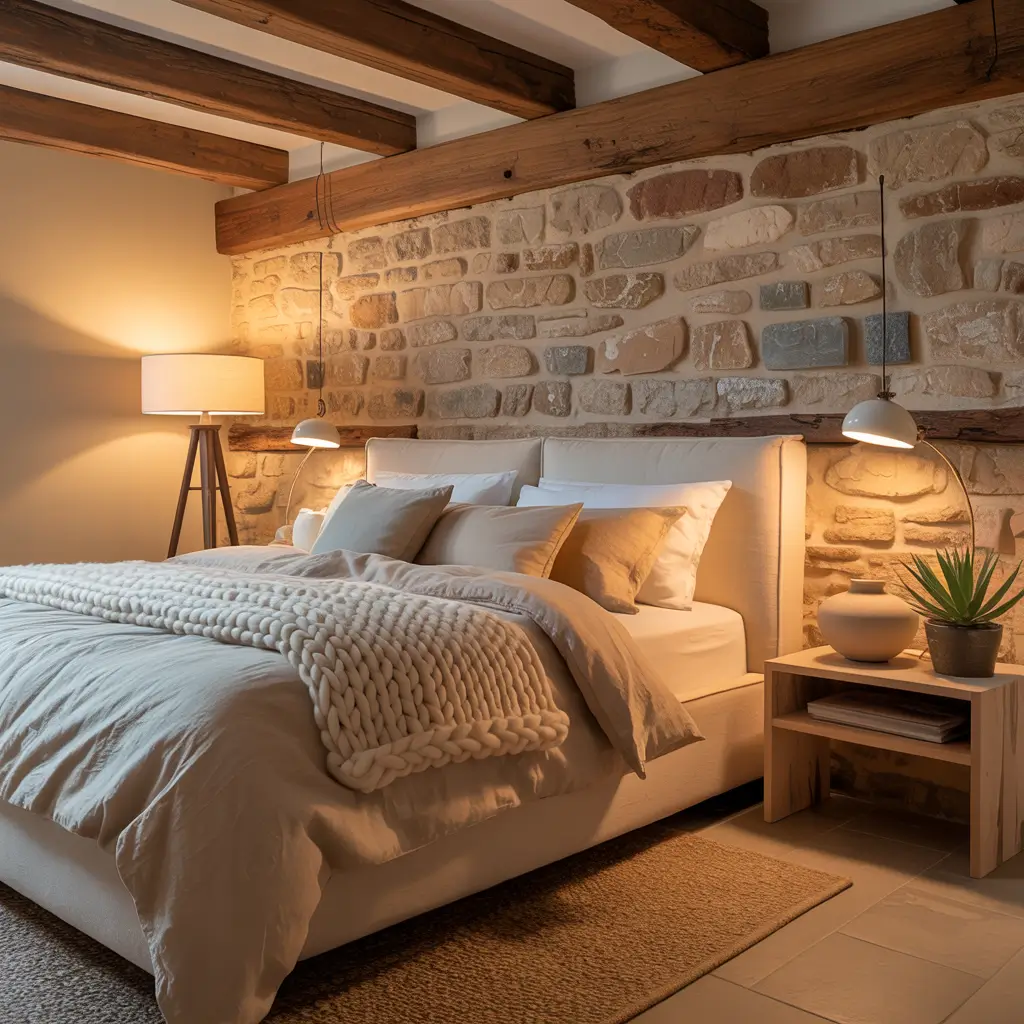 • Industrial Touches: A simple black metal bed frame or lighting fixtures can provide a modern counterpoint to the rustic elements.