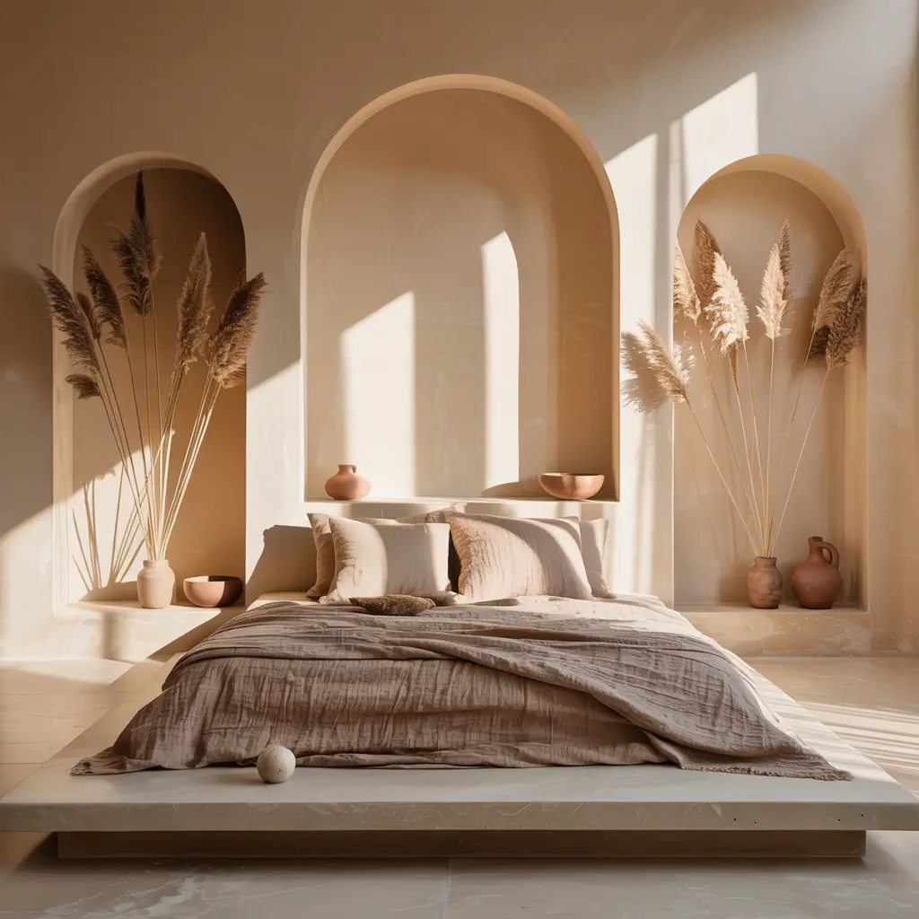 Channel the serene, sun-baked beauty of the desert with a desert-inspired modern bedroom. This style uses a palette of warm, dusty colors and natural, rugged textures.