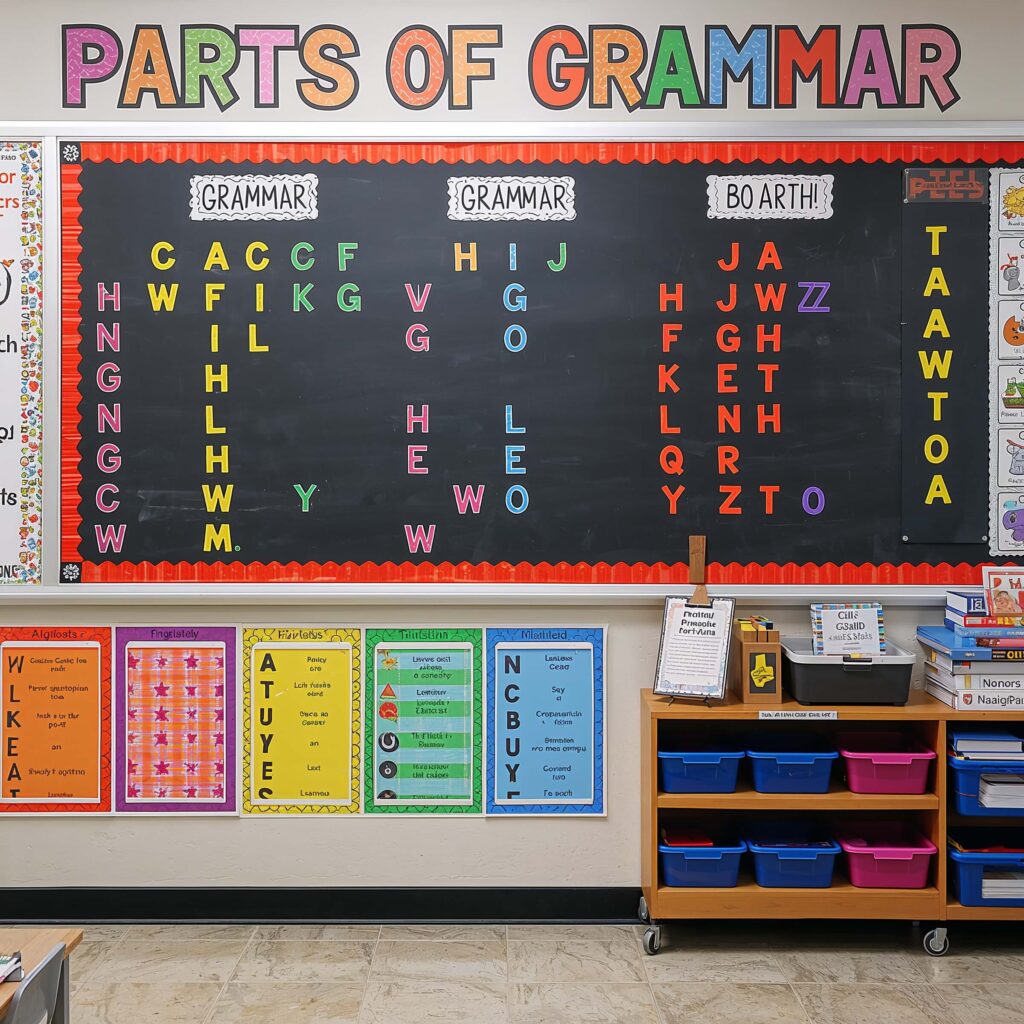 Divide your board into clear sections: one for parts of speech (with color coding – nouns in blue, verbs in red, etc.), another for punctuation rules, and a third for common errors. Use pocket charts or clear plastic sleeves so you can switch content based on what you’re teaching.