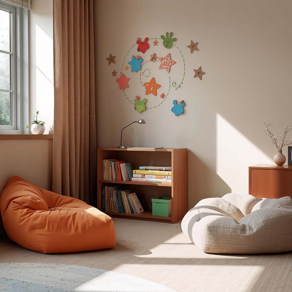 Location is everything. Find a corner with natural light if possible – near a window is golden. If you’re stuck with no windows (I feel your pain), create ambiance with warm lamp lighting. The goal? Make it feel nothing like a classroom and everything like their favorite coffee shop or bedroom.
