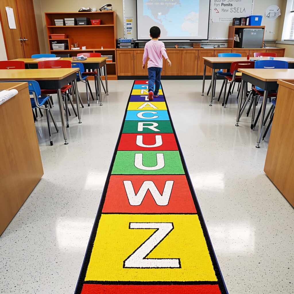 Instead of “A is for Apple,” you get “A is for Alliteration, Austen, and Antagonist.” Each letter becomes a mini-lesson in itself. The path physically guides students around the room, making it perfect for kinesthetic learners who need to move while learning.