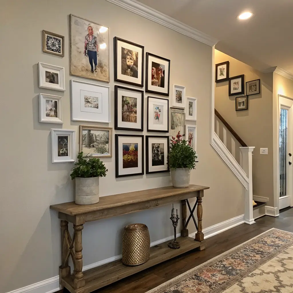 The gallery wall has experienced a bit of a reputation shift over the years. Done poorly, it looks chaotic and random. Done well, it’s genuinely one of the most impactful entrance foyer wall design ideas you can execute. The difference comes down entirely to curation and cohesion.