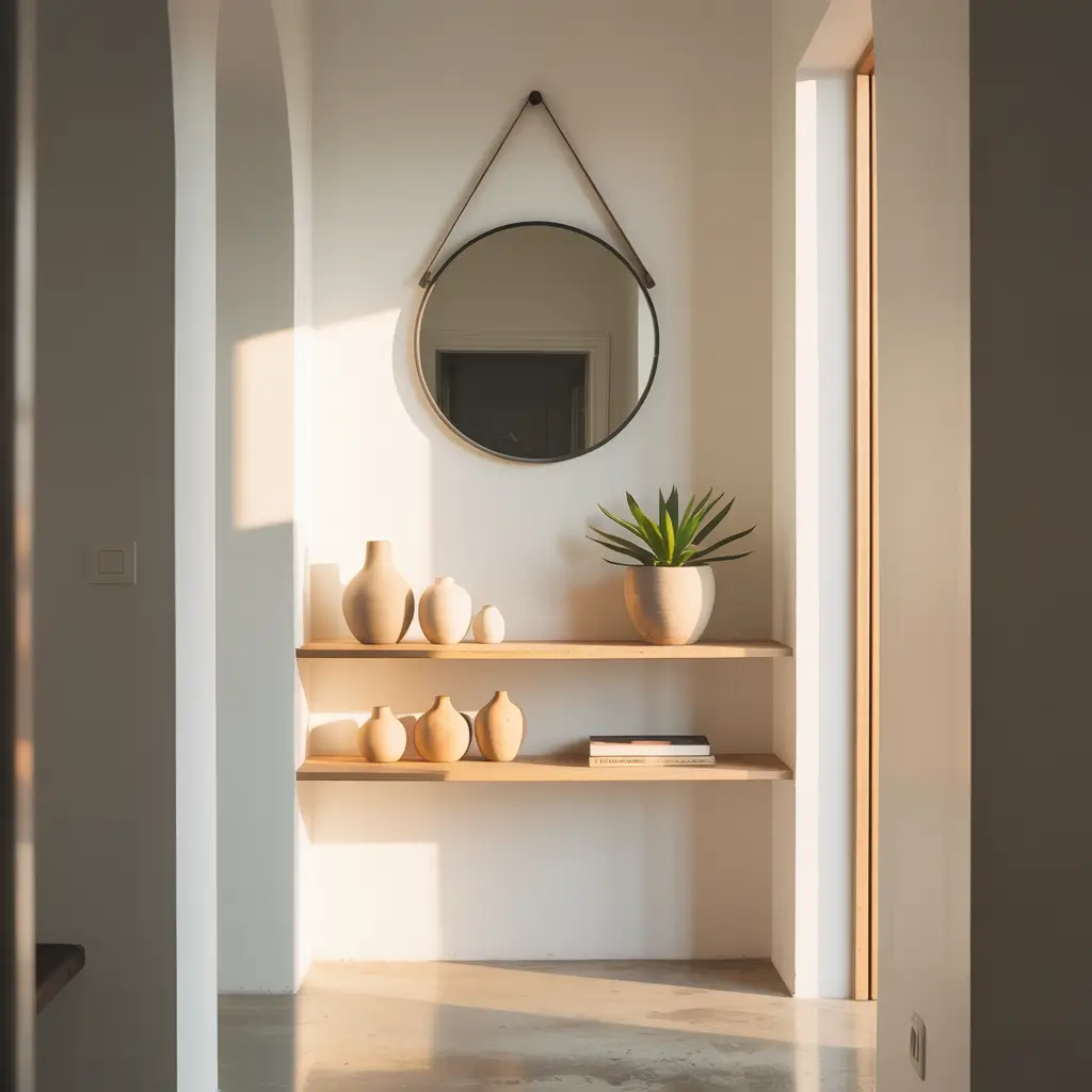 Minimalist Entryway with Floating Shelves