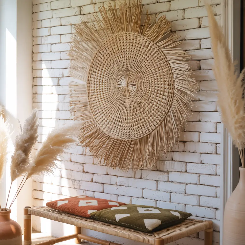 Boho style gets a bad rap for being all macrame and crystals. But done right? It creates an entryway that feels like that hip boutique hotel you stayed at once. Woven textures are the secret sauce here – think jute rugs, rattan baskets, and maybe a woven wall hanging if you’re feeling adventurous.