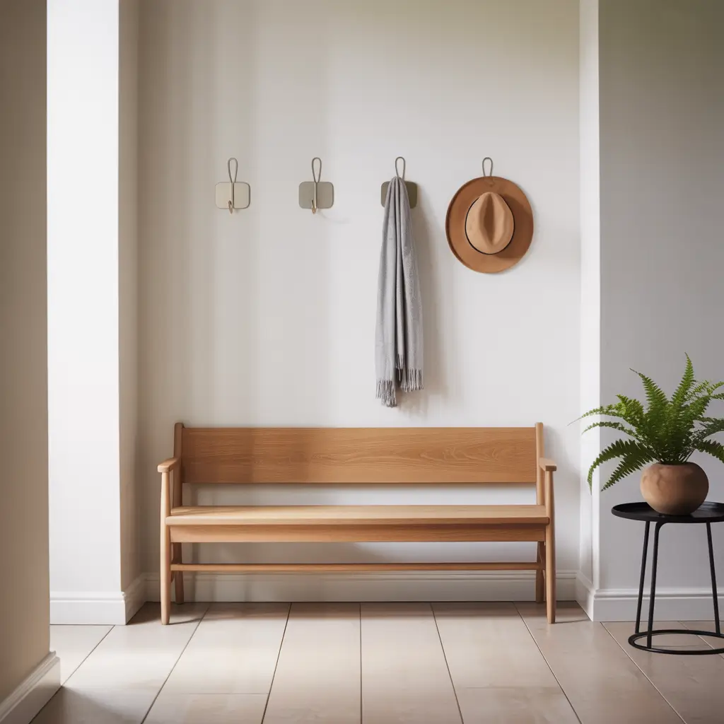 The secret is keeping it visually light. Open shelving, wall hooks at different heights, and slim profile furniture all maximize storage without making your hallway feel like a closet.