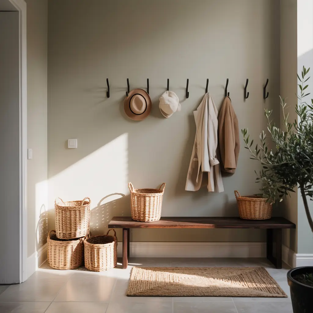 Functional Entryway with Hooks and Baskets