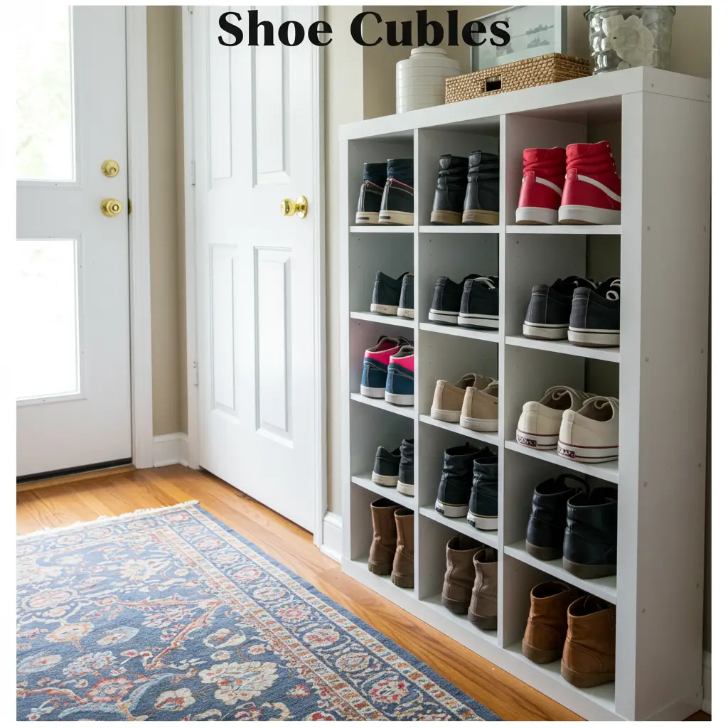 Cubbies are basically the organizational equivalent of comfort food—familiar, reliable, and they just work. Tiered storage cubbies give each pair of shoes its own dedicated spot, which means no more digging through a pile to find the matching shoe.