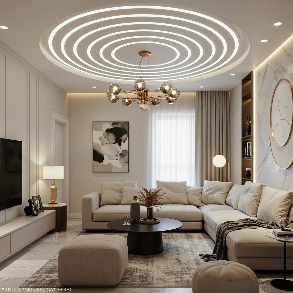 Circular designs break up all those rigid right angles that dominate our boxy rooms. My daughter’s room features a circular false ceiling with a color-changing LED ring, and it transformed the space from standard bedroom to something out of a sci-fi movie (in the best way).