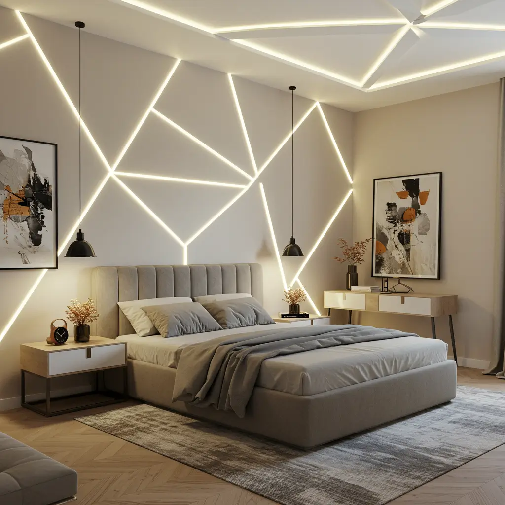 POP (Plaster of Paris) allows for smooth curves that other materials can’t achieve. The installation requires skilled craftsmen, but the results justify the extra cost. My circular design centers over the bed, creating a subtle zone that makes the sleeping area feel special.