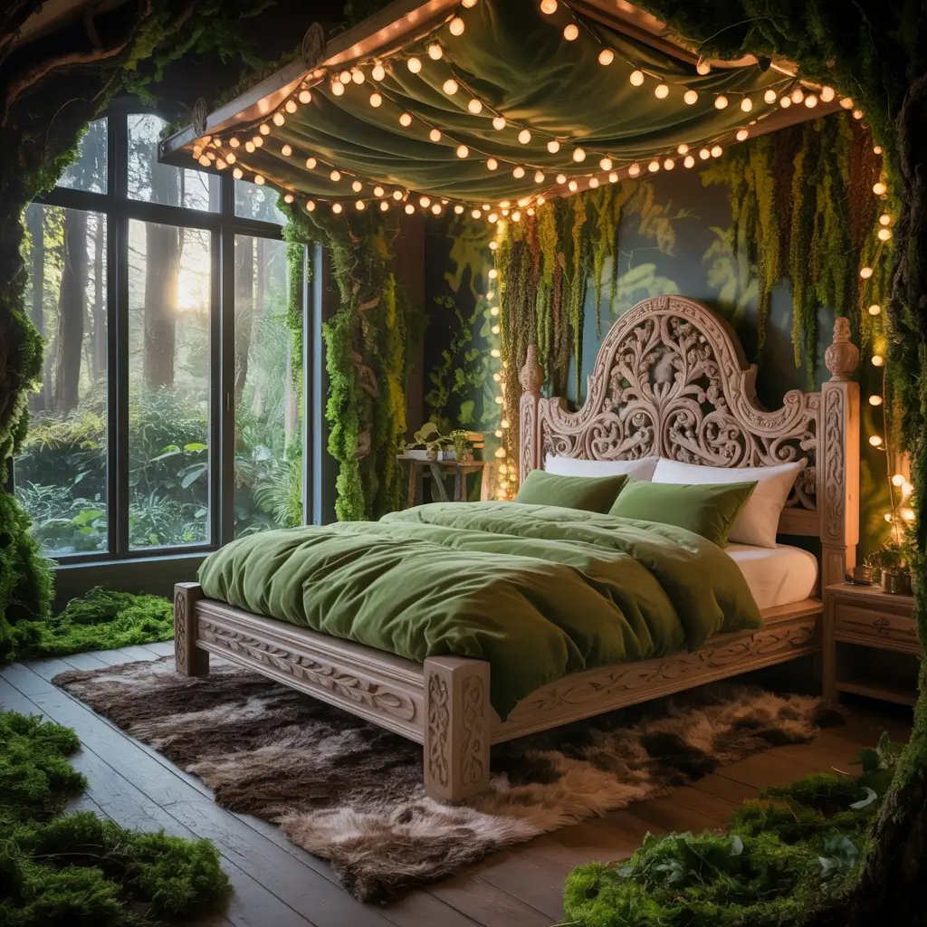 Channel your inner Legolas with an elven woodland escape. This aesthetic combines natural forest elements with elegant, ethereal touches that feel ancient and timeless. After marathoning Lord of the Rings (extended editions, obviously), I knew my bedroom needed that Rivendell touch.