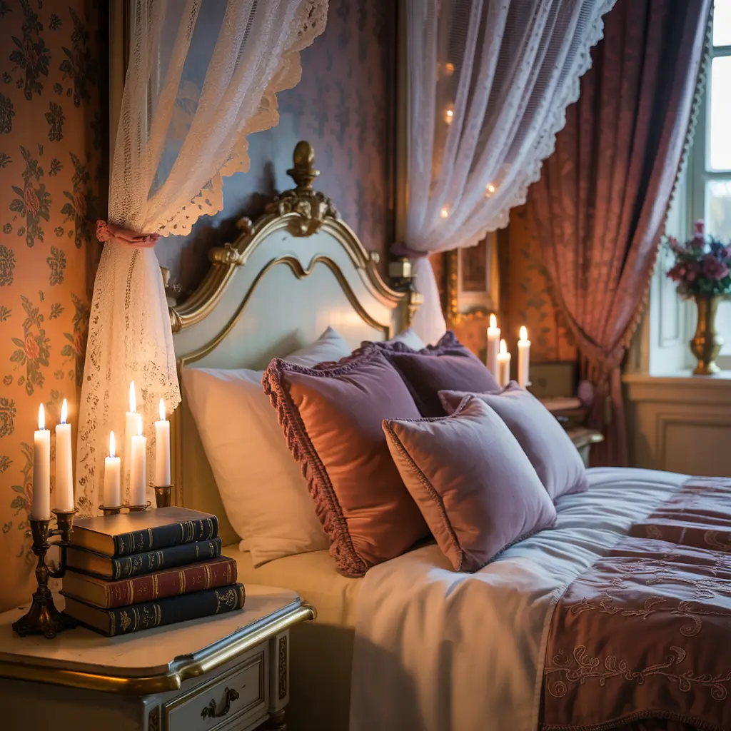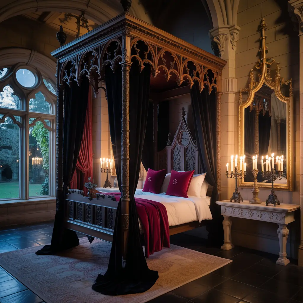 Let’s get dark and dramatic with the gothic fantasy chamber. This isn’t about being morbid – it’s about embracing the romantic, mysterious side of gothic aesthetics. After reading too much Anne Rice, I decided my bedroom needed more Victorian vampire vibes, and honestly, it’s been a mood booster.