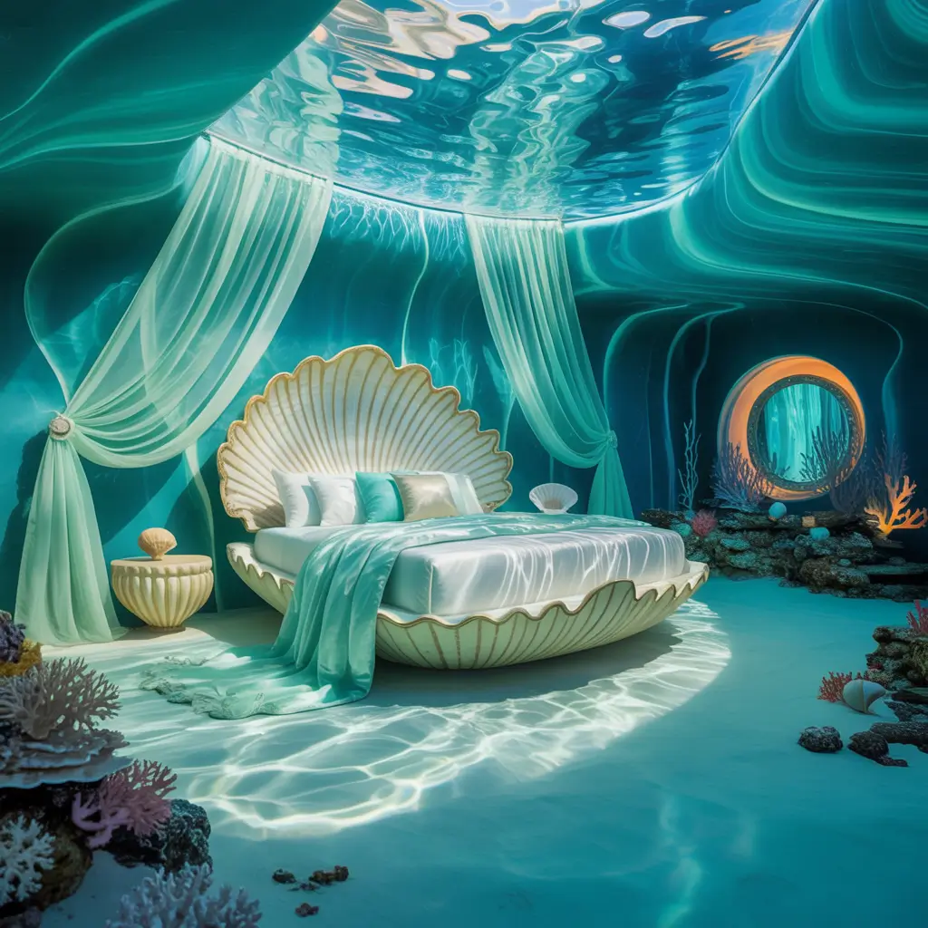 Create depth with layered blues and greens, from pale seafoam to deep ocean blue. Add shimmer and shine with sequined pillows, iridescent curtains, or metallic accents in pearl and silver.