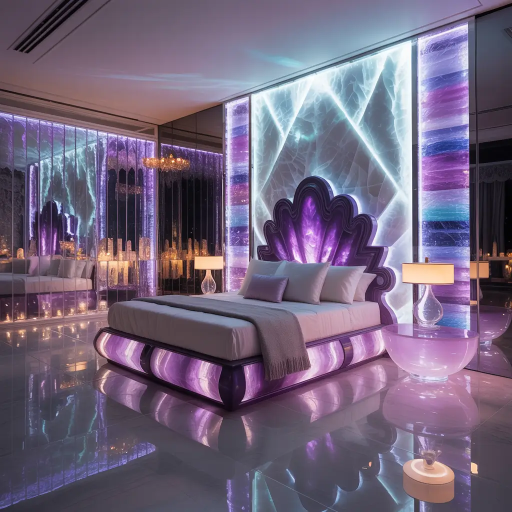 The crystal cavern fantasy space turns your bedroom into a glittering geode. This aesthetic celebrates the beauty of crystals and minerals with their natural colors and light-catching properties. My crystal collection got so out of hand that making my entire room match them just made sense.