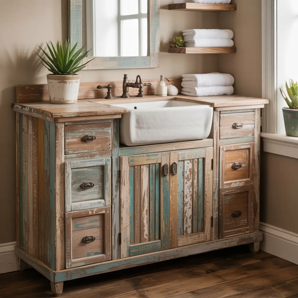 I chose a distressed gray cabinet for my rental property bathroom because it hides everything – water spots, scratches, dust. The tenants have been there two years, and it still looks intentionally weathered rather than actually beat up. Smart, right?
