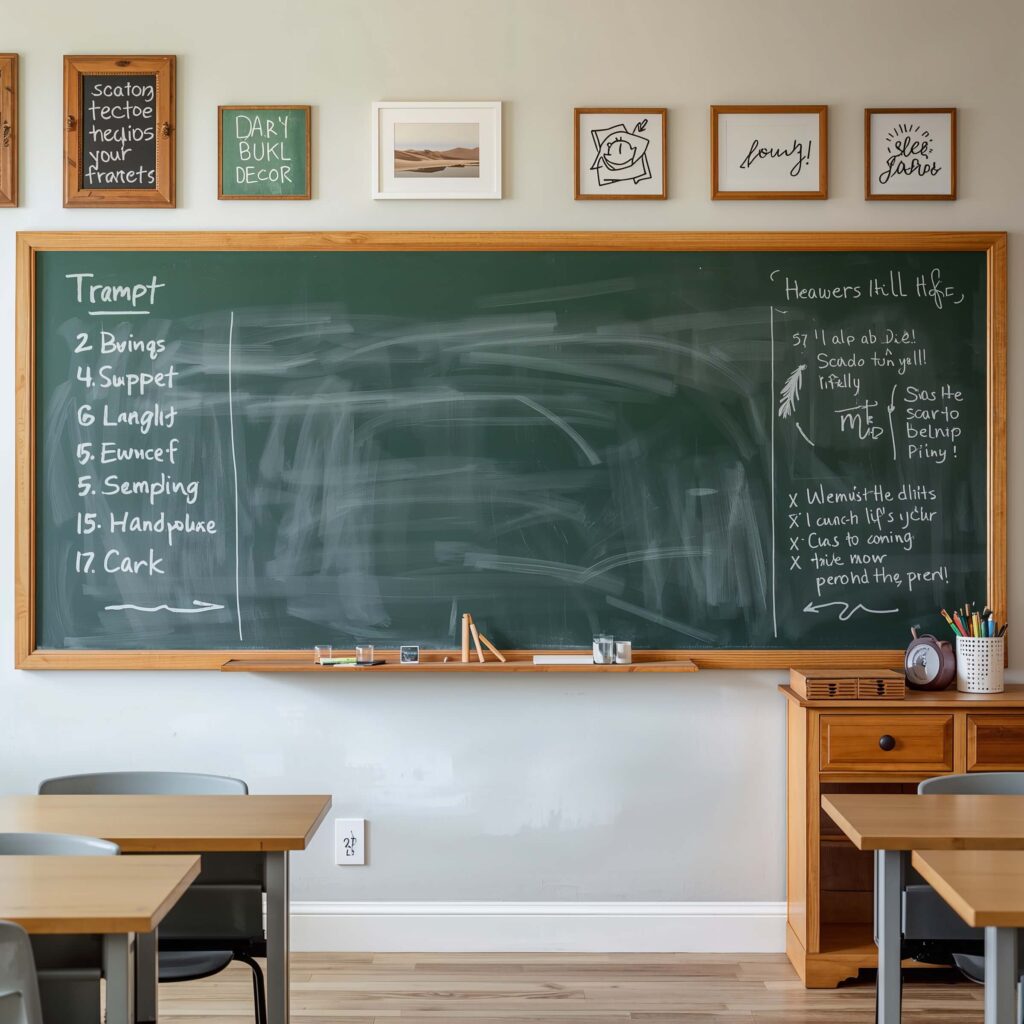 Section off areas for different purposes using painted or wooden borders. Create a daily schedule section, a vocabulary wall, and a free-draw zone where early finishers can express themselves. Pro tip: invest in dustless chalk and quality erasers—your respiratory system will thank you.
